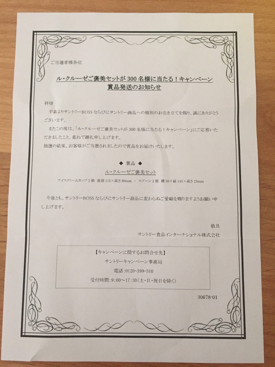 今回の懸賞はサントリーの