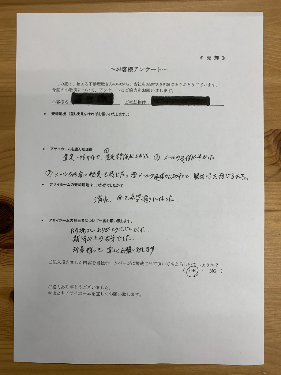 アサイホームTOP > 株式会社 アサイホームのスタッフブログ記事一覧 > 嬉しいアンケートが届きました♪