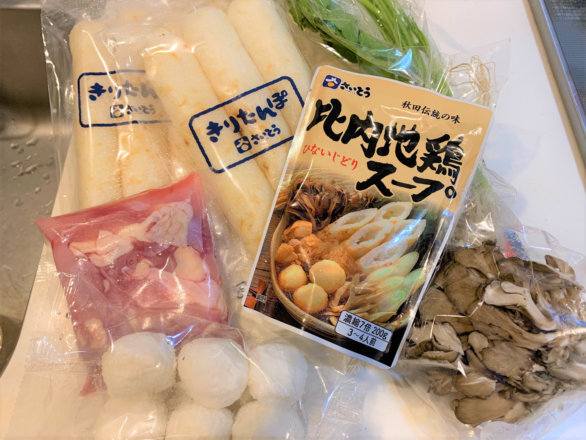 きりたんぽの他にも、比内地鶏のお肉や舞茸、セリなど必要な材料が全てセットで入っていました!便利ですね(^^)/