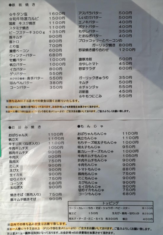 豊富なお好み焼きと鉄板焼きのメニューになっています♪
